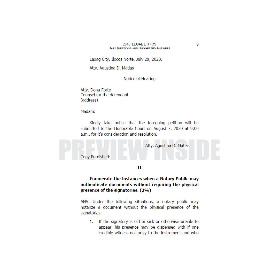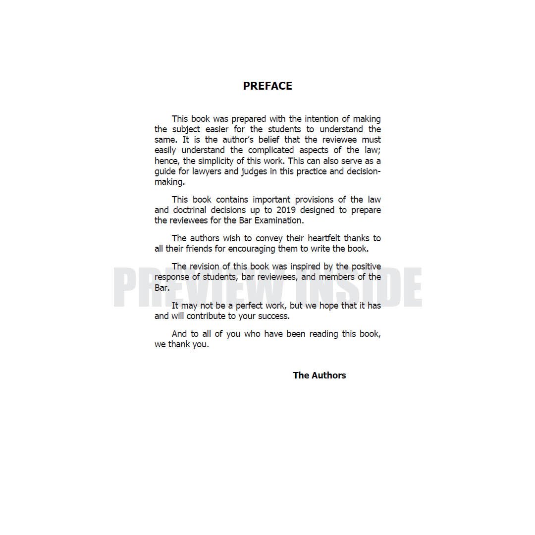 This book contains important provisions of the law and doctrinal decisions up to 2019 designed to prepare the reviewees for the Bar Examination.
