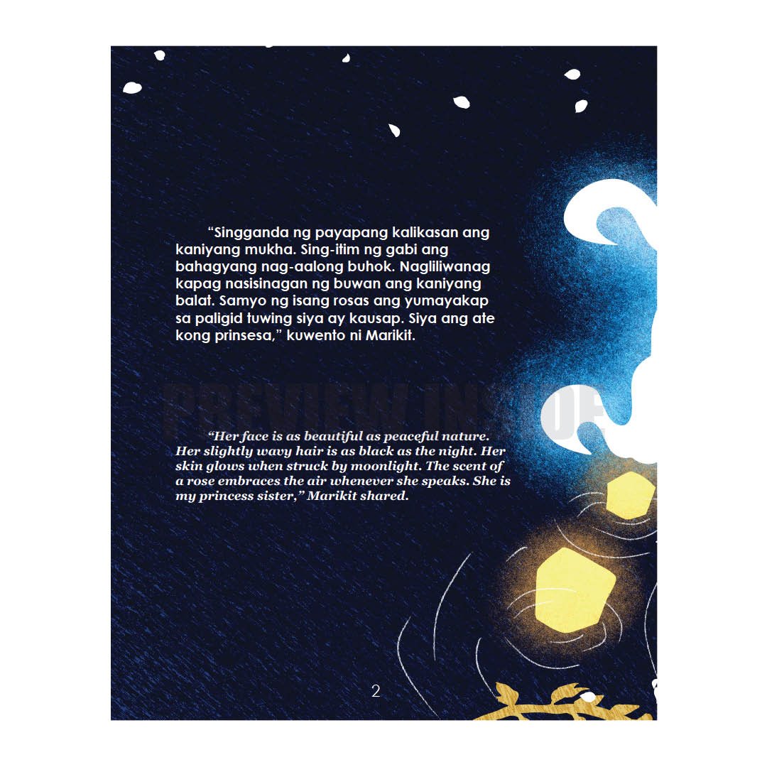 Princesses are usually paraded for their beauty because they are the face of their palace and kingdom, meant to enchant wooing gentlemen or princes. But Marikit’s older sister is different. In her stories, her sister Mayumi is a princess whose beauty is second to none. Yet, whenever her classmates ask to see her, Marikit falls silent. Her sister cannot be seen; she is a hidden princess.