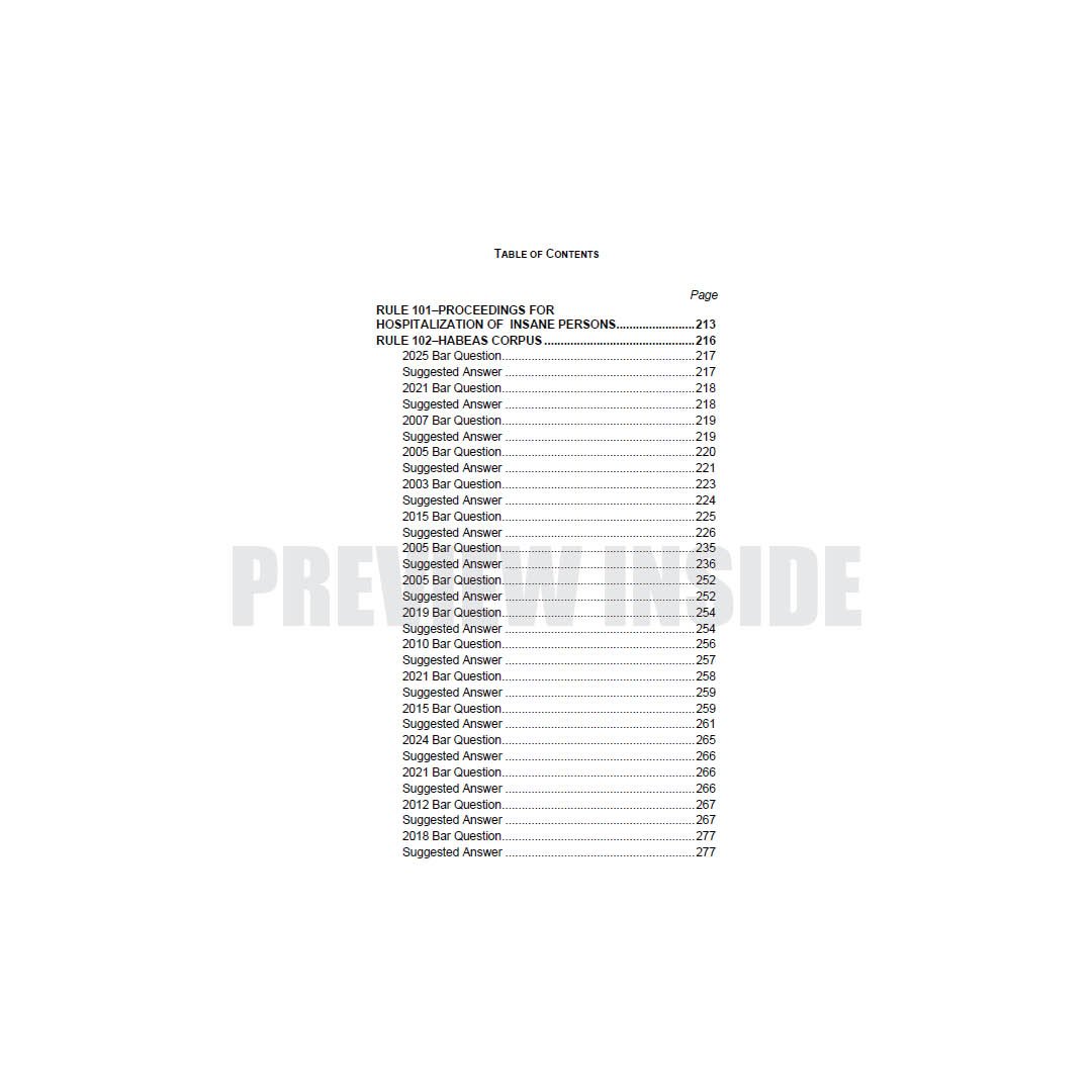 This book gives emphasis on the basic structures of the Rules on Special Proceedings and the frequently asked provisions in the previous bar examinations from 1988-2025.