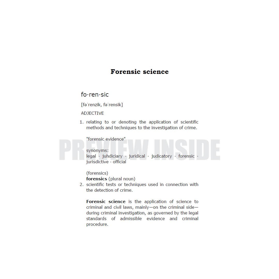 Forensic science is the application of science to criminal and civil laws, mainly—on the criminal side—during criminal investigation, as governed by the legal standards of admissible evidence and criminal procedure.