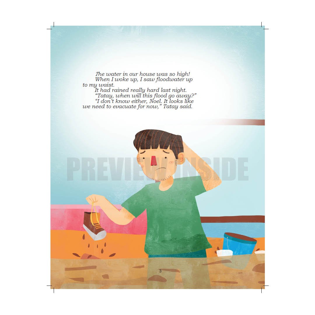 Dahil sa malakas na ulan, bumaha ang buong barangay Albano, kaya kinailangang lumikas ni Noel at ng kanyang pamilya. Habang iniisip kung paano malalampasan ang baha, may isang simpleng ideya na makakatulong hindi lamang sa kanila kundi pati na rin sa iba. Ano kaya ang ideyang ito? Halina’t samahan si Noel sa kuwentong ito!