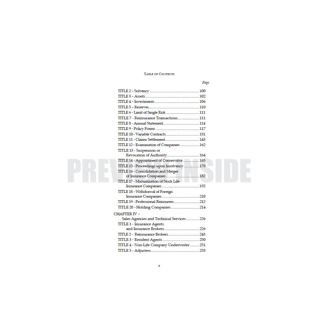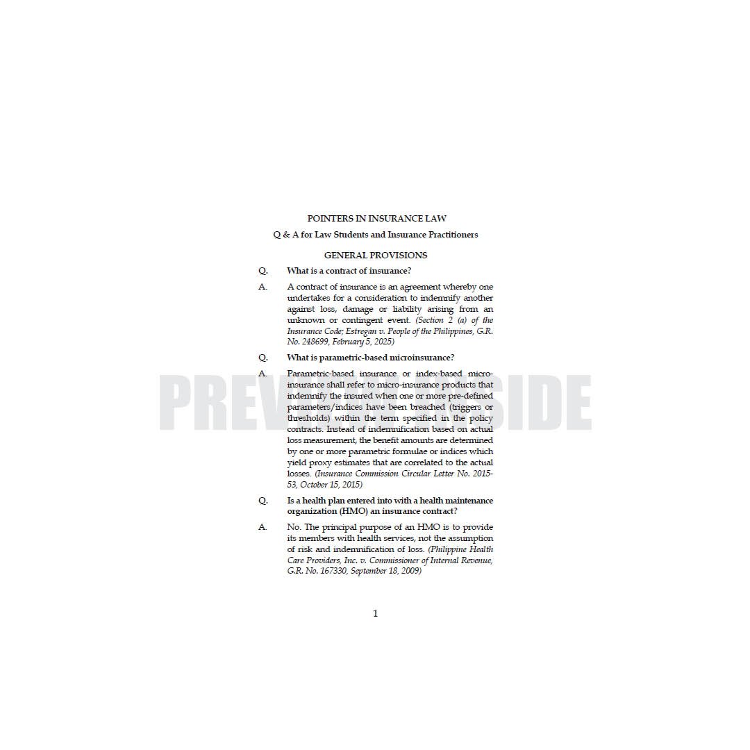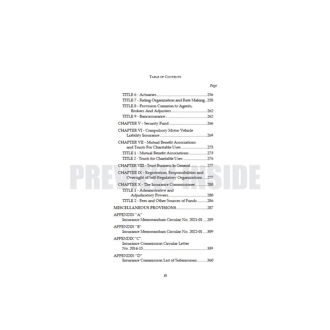 This book is especially designed for law students and insurance practitioners. The manner of presentation is user-friendly question-and-answer format. This work includes latest decisions of the Supreme Court on Insurance Law and recent circulars of the Insurance Commission in major areas, including: licensing; corporate governance; merger and consolidation; and conservatorship, receivership and liquidation. The Rules of Procedure for Administrative Cases and Monetary Claims Adjudication of the Insurance Commission are discussed and incorporated. The authors also included the List of Fees and Charges and List of Submissions in the Insurance Commission for ready reference.